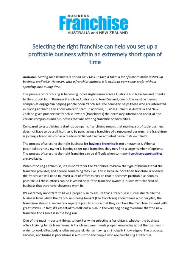 Selecting The Right Franchise Can Help You Set Up A Profitable Busine