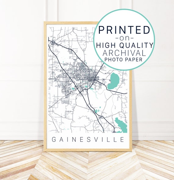 Gainesville Map Art Print Map Of Gainesville Florida City Etsy
