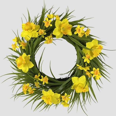 16 Decorative Artificial Daffodil Wreath Yellow Green Threshold