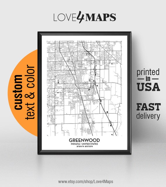 Greenwood Indiana Map Greenwood City Print Greenwood Poster Etsy