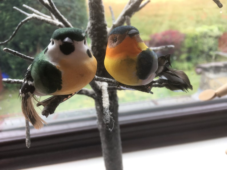 Artificial Bird Clips Pair Of Small Speckled Feather Birds Etsy
