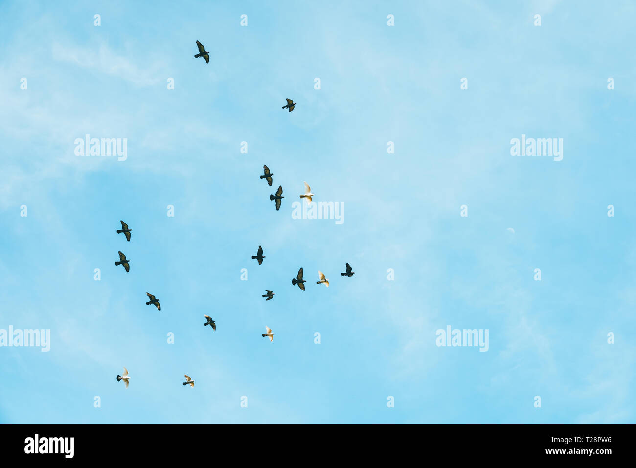 Wild Birds Flying High In The Sky Blur Background Stock Photo