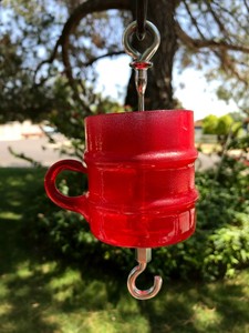 Pesticide free ant moat to deter ants from your hummingbird feeder. Hang the hummingbird feeder from the bottom of the moat and fill cap with water.