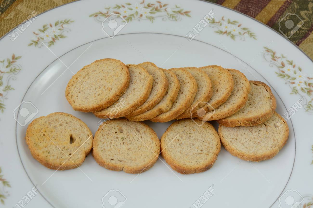 Melba Toast On White Plate Stock Photo Picture And Royalty Free