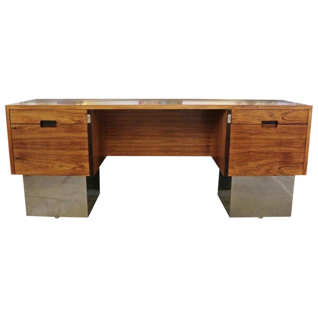 Rosewood And Chrome Base Desk Attributed To Milo Baughman Chairish