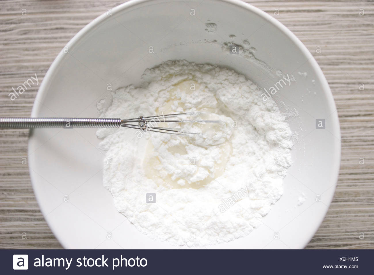 Fluffy White Icing Sugar And Water Being Mixed With A Small Whisk