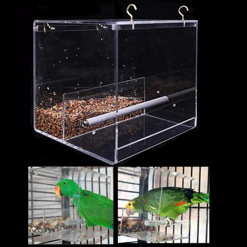 Acrylic Bird Feeder No Mess Automatic Seed Feeder Cage Parrot