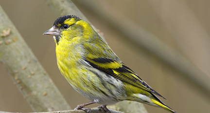 Pine siskin bird. Across the midwest and eastern us. It is a migratory bird with an extremely sporadic winter range. This nomadic finch ranges widely and erratically across the continent each winter in response to seed crops.