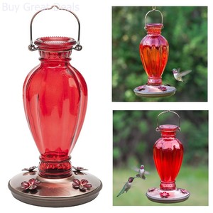 Hummingbird Feeder Station Vintage Bird Hanging Red Glass Nectar