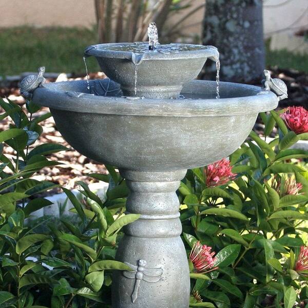 Shop Weathered Stone Finish Outdoor Resin Solar Fountain Bird Bath