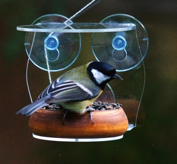 Window Bird Feeder Handmade Modern Round Wood Bowl Acrylic Etsy