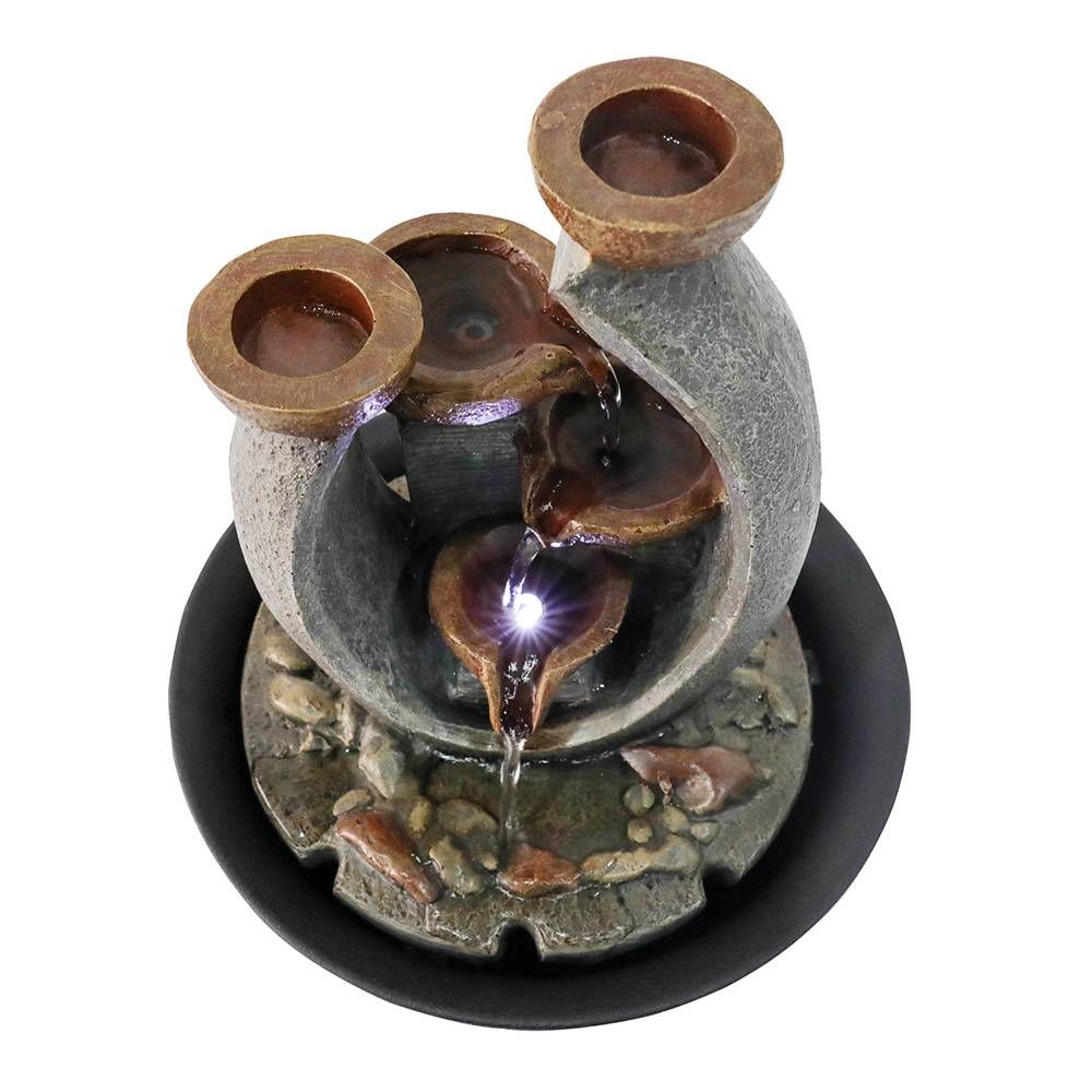 Product title tabletop water fountain with led lights three tier. Find the perfect patio furniture backyard decor at hayneedle where you can buy online while you explore our room designs and curated looks for tips ideas inspiration to help you along the way. Buy products such as bond quinn indooroutdoor tabletop fountain 115 dolphin table fountain at walmart and save.