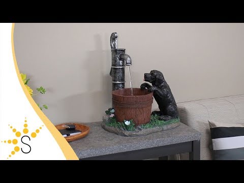 Sunnydaze Playful Farmhouse Pup And Water Pump Tabletop Fountain