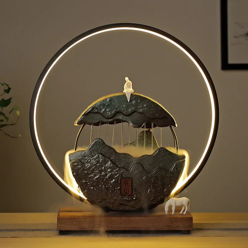 220v Zen Chinese Water Fountain Indoor Ceramic Fish Tank Living