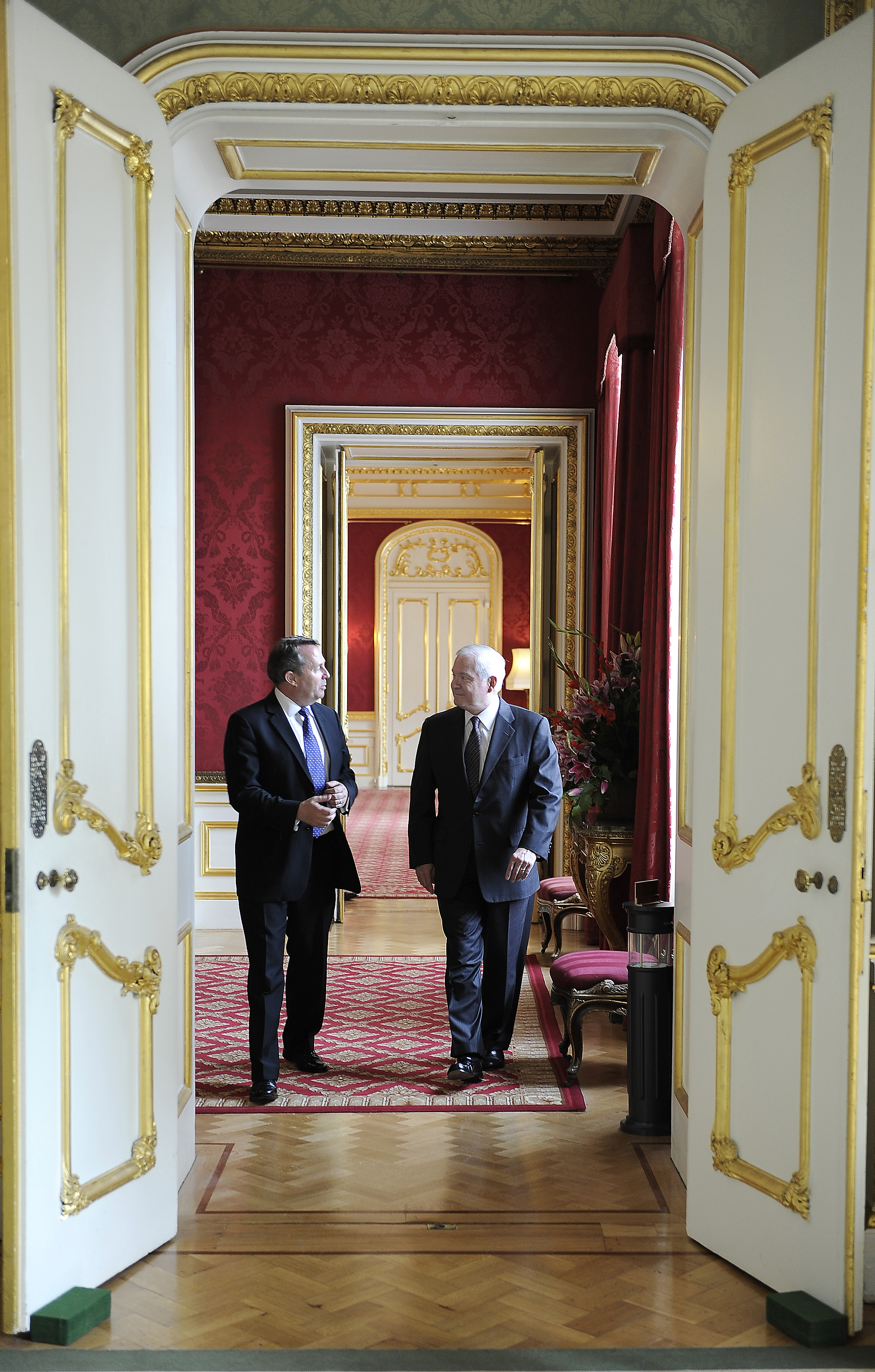 U S Defense Secretary Robert M Gates Right Walks With British