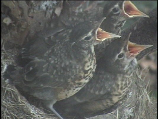 Three Hungry Baby Robins In A Nest Wanting The Mother Bird To