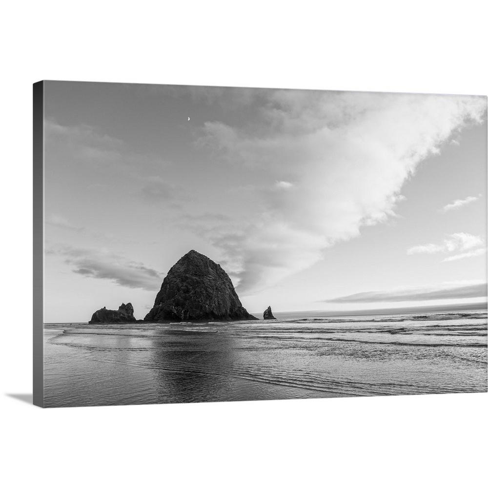 Greatbigcanvas 30 In X 20 In Black And White Haystack Rock