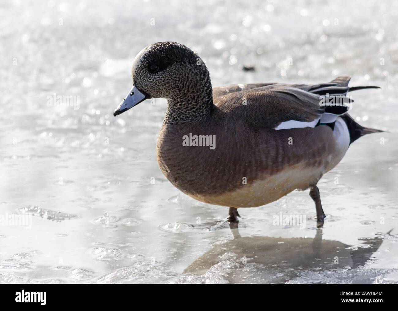 American Wigeon Male Duck Standing In The Snow Beautiful Bird