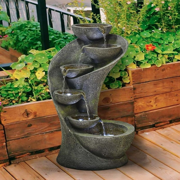 23 1 2 H Outdoor Water Fountain With Led Light Modern Curved