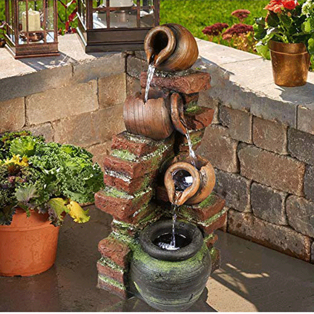 23 6 Outdoor Water Fountain With Led Lights Modern Cascading