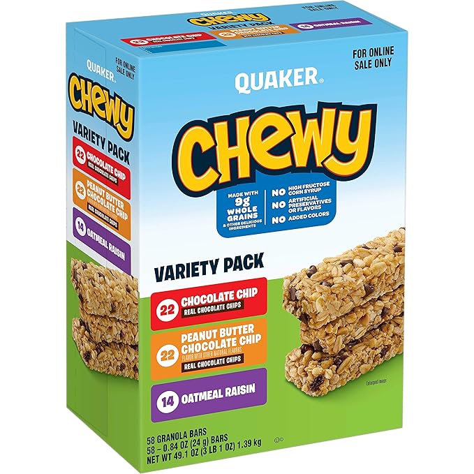 Quaker Chewy Granola Bars 3 Flavor Variety Pack 58 Pack