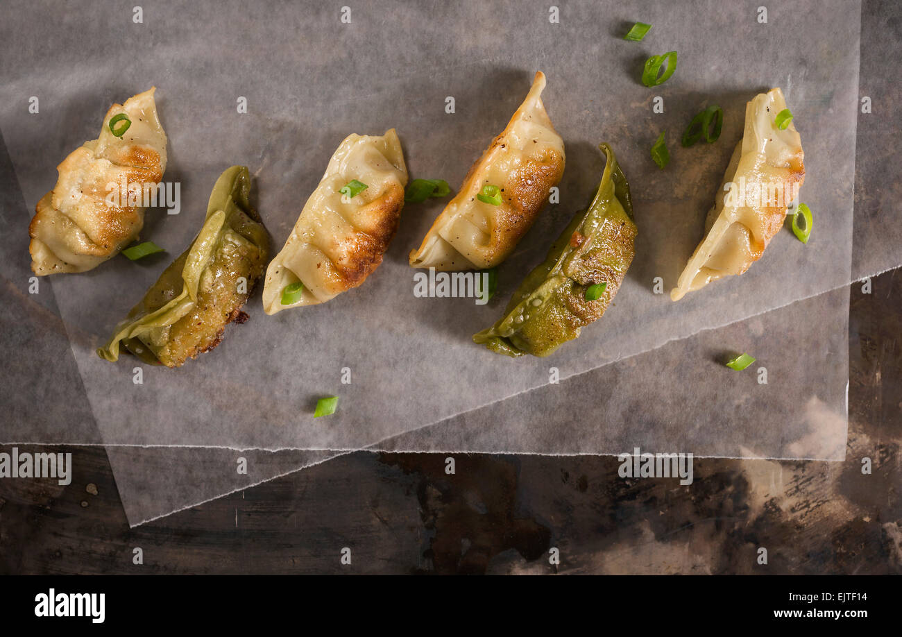Homemade Pan Fried Pot Stickers Yaki Gyoza Japanese Food Stock