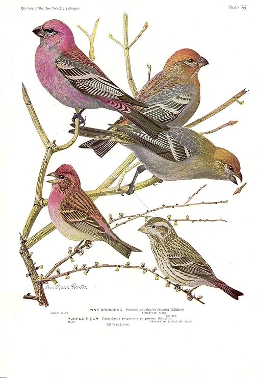 Amazon Com 1936 Vintage Fuertes Birds 76 Purple Finch Grosbeak