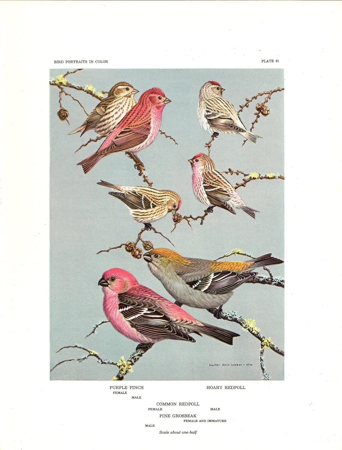 Amazon Com 1960 Vintage Purple Finch Redpoll Pine Grosbeak
